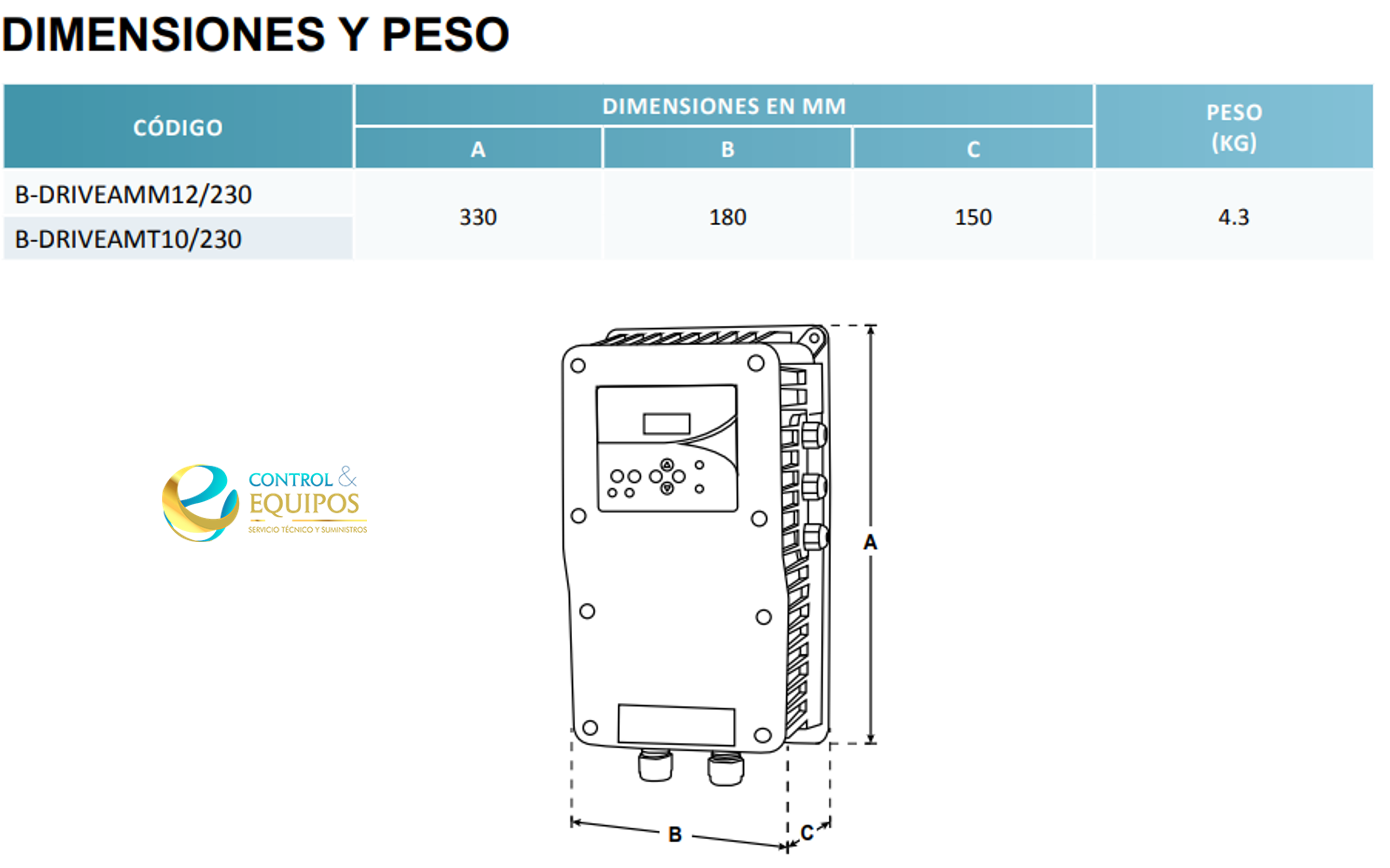 | B-DRIVEAMM12/230 | Monofasíca | 230V | Monofasíca | 230V | 12A |